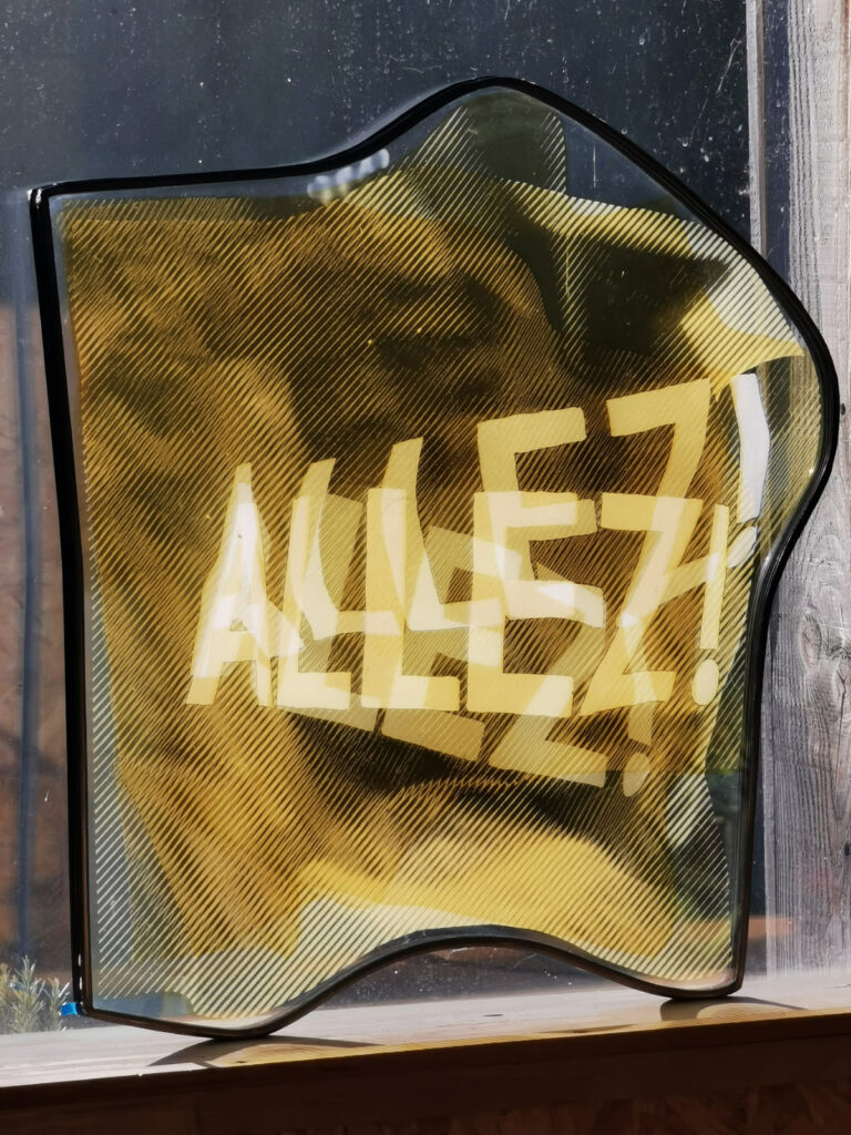 dans les espaces extérieurs de la résidence. Chacune des pièces de la série est différentes et mets en forme le mot : « ALLEZ ! ».
